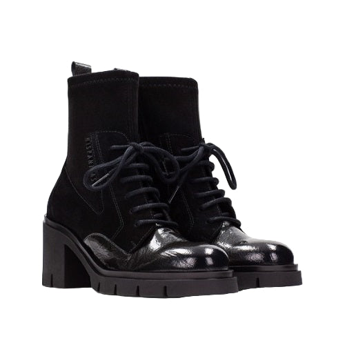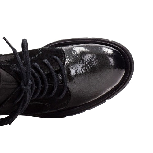 Hispanitas Comfort Μποτάκι Zurich HI254281 Μαύρο-Ανθρακί με ξεχωριστό χοντρό τακούνι. Έχει κορδόνια στο επάνω μέρος και φερμουάρ στο πλάι για γρήγορη και εύκολη εφαρμογή. Ο πάτος είναι μαλακός με τεχνολογία «Triflow gel system». Η τεχνολογία «triflow gel system» της Hispanitas, χάρη στην τριπλή ενισχυμένη σόλα με τζελ και αφρώδες υλικό, σας παρέχει προστασία από τους κραδασμούς και εξαιρετική άνεση σε κάθε βήμα. Το Hispanitas Comfort Μποτάκι Zurich HI254281 Μαύρο-Ανθρακί διαθέτει αντιολισθητική σόλα για καλύτερη πρόσφυση και ανθεκτικότητα.
